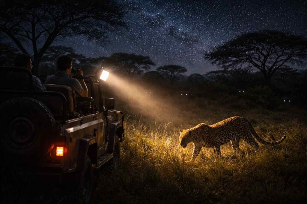 - Kenya & Tanzania: Some private reserves and lodges host night drives under strict park rules.